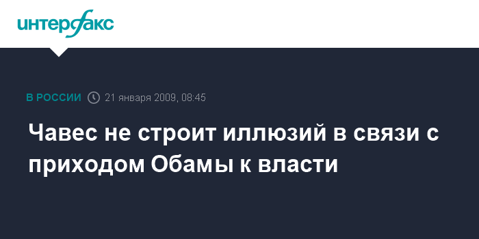 Москва. 21 января. INTERFAX.RU - Венесуэльский лидер Уго Чавес заявил, что не строит иллюзий в связи с приходом Барака Обамы к власти в США.