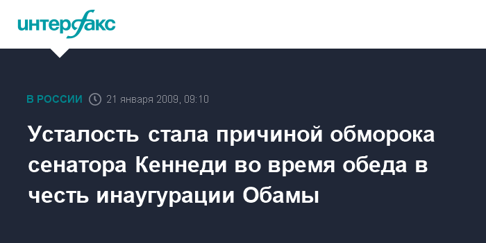 Москва. 21 января. INTERFAX.RU - Причиной обморока ветерана американской политики, сенатора Эдварда Кеннеди, во время обеда в честь инаугурации нового президента США Барака Обамы, стала усталость, считают врачи.