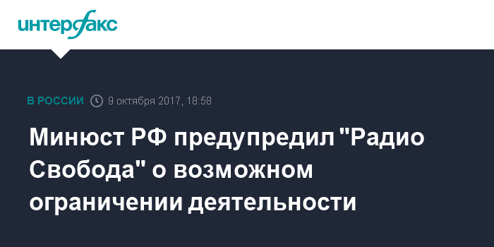 Минюст РФ предупредил "Радио Свобода" о возможном ограничении деятельности