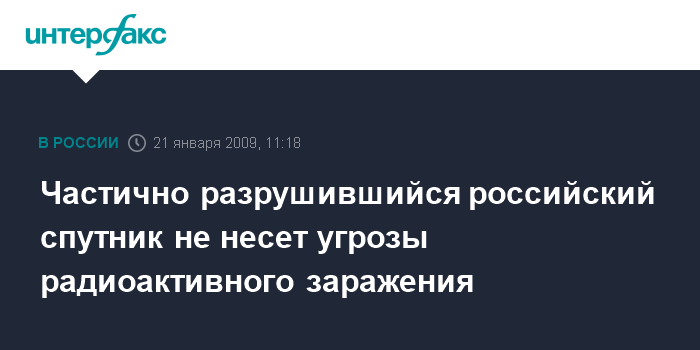 Частично разрушившийся российский спутник не несет угрозы радиоактивного заражения