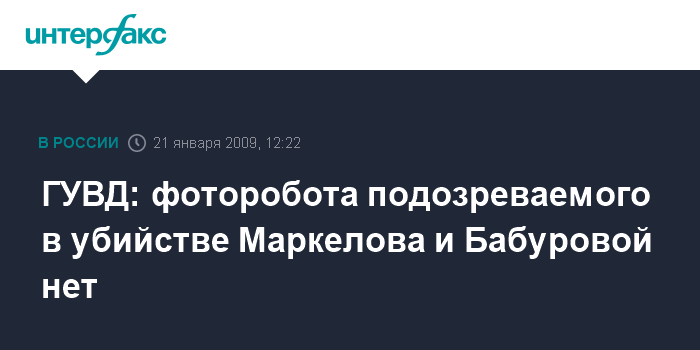 ГУВД: фоторобота подозреваемого в убийстве Маркелова и Бабуровой нет