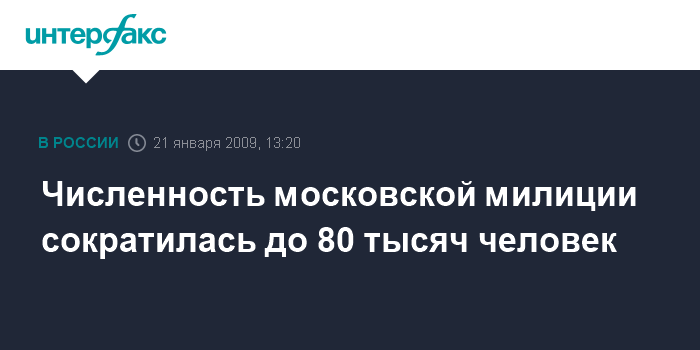 "Достаточно ее (милиции - ИФ), где-то около 80 тыс.", - подчеркнул он, напомнив, что в конце прошлого года было принято решение о сокращении численности ГУВД на 6 тыс. сотрудников. Пронин добавил, что в 2009 году на зарплаты милиционеров по ведомственной линии будет выделено 1,6 млрд руб. и из бюджета Москвы - еще 6 млрд руб.