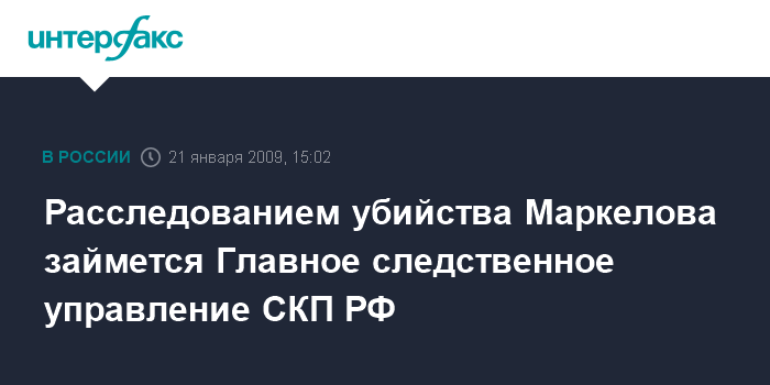 Москва. 21 января. INTERFAX.RU - Расследование убийства адвоката Станислава Маркелова и журналистки Анастасии Бабуровой передано в Главное следственное управление СКП РФ.
