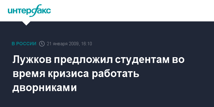 Отвечая на вопрос одного из студентов, что делать студенчеству в условиях кризиса для борьбы с нехваткой денег, Лужков отметил, что "во все времена студенты испытывали острый недостаток в деньгах".