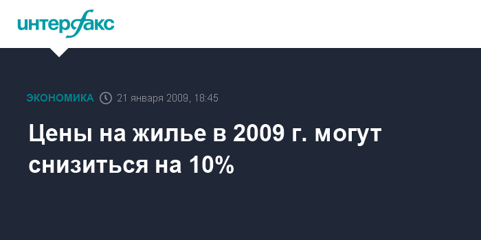 Цены на жилье в 2009 г. могут снизиться на 10%
