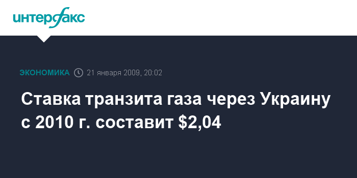 Ставка транзита газа через Украину с 2010 г. составит $2,04