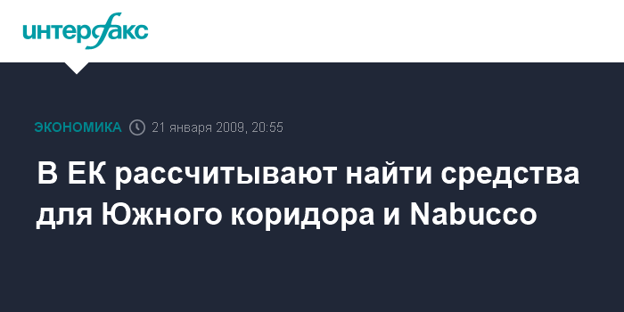 Баку. 21 января. INTERFAX.RU - Еврокомиссия надеется на привлечение необходимых средств для создания Южного коридора и проекта Nabucco.