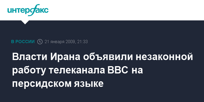 Тегеран. 21 января. INTERFAX.RU - Деятельность канала британской телерадиокорпорации BBC на персидском языке, начавшего свое вещание неделю назад, является незаконной, сказал в среду министр культуры и исламской ориентации Ирана Мохаммад Хусейн Саффар Харанди. Министр запретил иранским журналистам работать на этом канале.