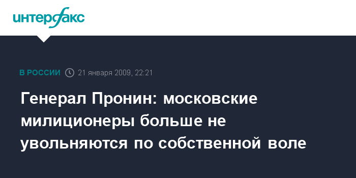 Генерал Пронин: московские милиционеры больше не увольняются по собственной воле