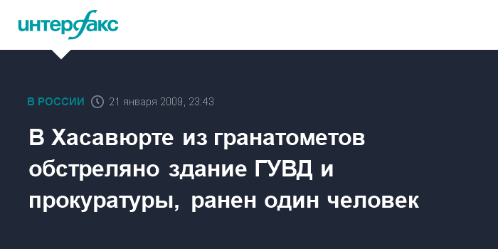 Ростов-на-Дону. 21 января. ИНТЕРФАКС-ЮГ - Неизвестные обстреляли в дагестанском Хасавюрте здание городского отдела внутренних дел и прокуратуры, ранен местный житель, сообщили агентству "Интерфакс-Юг" в штабе городского отдела внутренних дел.