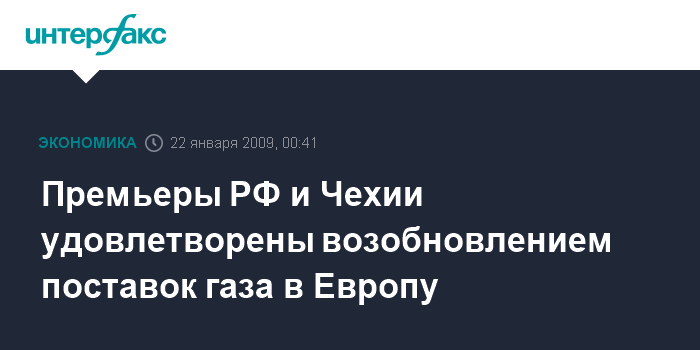 Премьеры РФ и Чехии удовлетворены возобновлением поставок газа в Европу