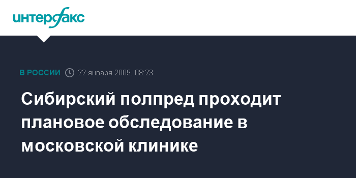 Сибирский полпред проходит плановое обследование в московской клинике