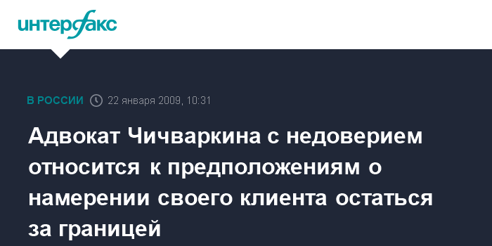 Москва. 22 января. INTERFAX.RU - Адвокат бывшего владельца "Евросети" Евгения Чичваркина считает, что его доверитель выехал за пределы России на отдых, а не на постоянное место жительства.