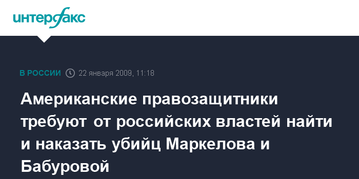 Американские правозащитники требуют от российских властей найти и наказать убийц Маркелова и Бабуровой