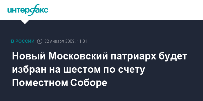 Москва. 22 января. INTERFAX.RU - Поместный Собор, который 27 января в храме Христа Спасителя изберет 16-го Московского патриарха, станет шестым в истории Русской православной церкви.