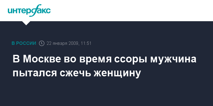 Москва. 22 января. INTERFAX.RU - На севере Москвы в четверг во время ссоры мужчина облил женщину легковоспламеняющейся жидкостью и поджог, после чего скрылся, сообщил "Интерфаксу" источник в правоохранительных органах города.