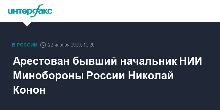 Москва. 22 января. INTERFAX.RU - Генерал-майор запаса, бывший начальник НИИ Минобороны России Николай Конон взят под стражу по ходатайству Главной военной прокуратуры.
