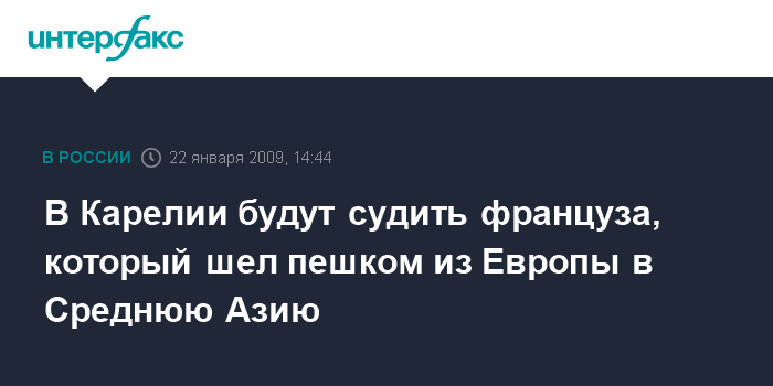 Ранее сообщалось, что минувшим летом 35-летний иностранец пешком пришел в Карелию из Финляндии. Hарушителя пограничники задержали в Муезерском районе Карелии. С собой у него не было никаких документов, кроме идентификационной карты. По словам гражданина Франции, он намеревался совершить пешее путешествие из Европы в Среднюю Азию.