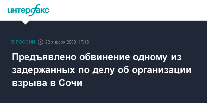 Предъявлено обвинение одному из задержанных по делу об организации взрыва в Сочи