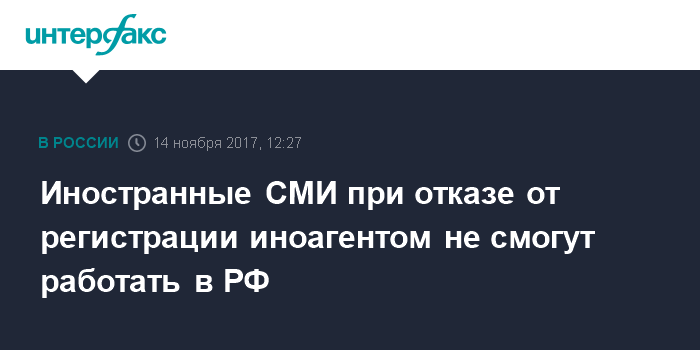 Иностранные СМИ при отказе от регистрации иноагентом не смогут работать в РФ