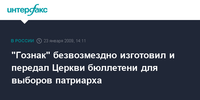 "Гознак" безвозмездно изготовил и передал Церкви бюллетени для выборов патриарха