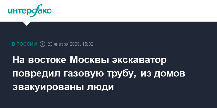 Москва. 23 января. INTERFAX.RU - На востоке Москвы по адресу 1-й Красковский проезд, дом 38 Б повреждена газовая труба среднего давления, сообщил "Интерфаксу" источник в правоохранительных органах в пятницу.