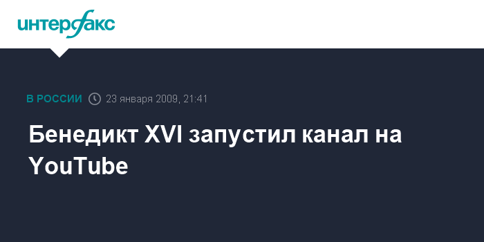 Лондон. 23 января. INTERFAX.RU - Папа римский Бенедикт XVI запустил канал, посвященный Ватикану, на популярном интернет-видеосервисе YouTube, сообщает британская телерадиокорпорация BBC.