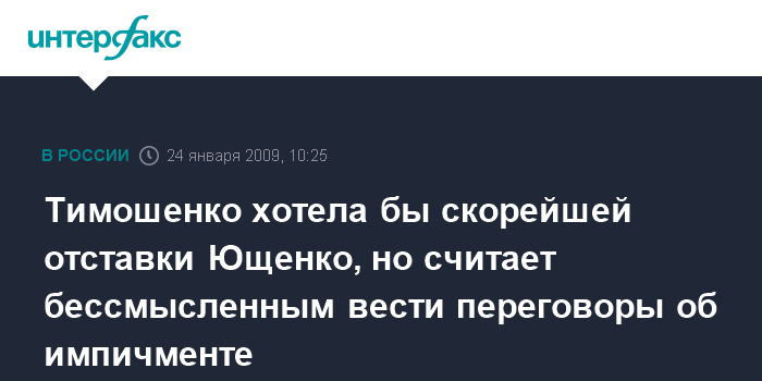 Тимошенко хотела бы скорейшей отставки Ющенко, но считает бессмысленным вести переговоры об импичменте