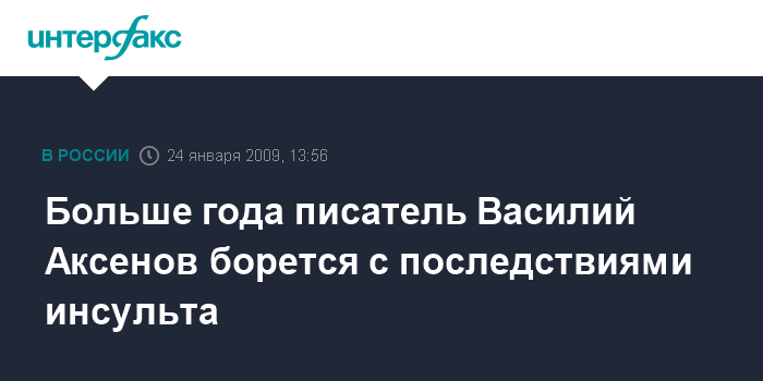 Москва. 24 января. INTERFAX.RU - Известный писатель Василий Аксенов больше года находится в больнице после перенесенного инсульта.