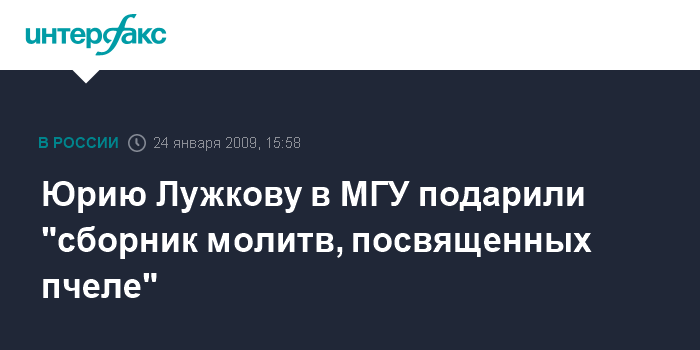 Юрию Лужкову в МГУ подарили "cборник молитв, посвященных пчеле"