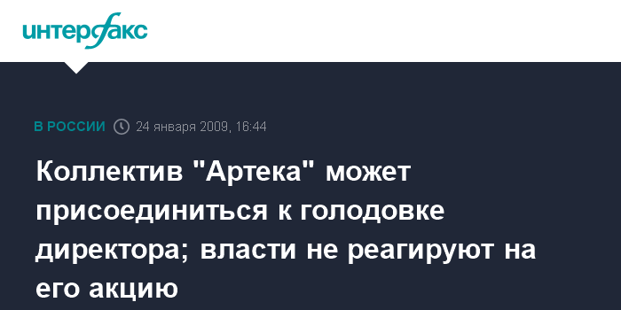 Как сообщила агентству "Интерфакс-Украина в субботу пресс-секретарь "Артека" Елена Мех, несмотря на то, что уже в течение недели генеральный директор лагеря Борис Новожилов проводит голодовку, от властей страны никакой реакции не последовало. По ее словам, Новожилов пока не намерен прекращать голодовку, а коллектив "Артека" готов поддержать своего руководителя либо присоединившись к голодовке, либо в других формах протеста.