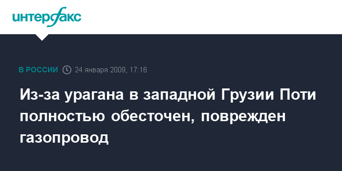 Полностью остались без электроэнергии город Поти, Сенакский, Хобский, Самтредский, Мартвильский, Ланчхутский, Чохатаурский, Хонский, Ванский и Багдадский районы, уточнил собеседник агентства.
