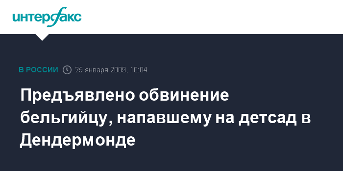 Лондон/Брюссель. 25 января. INTERFAX.RU - В Бельгии 20-летнему мужчине, устроившему в пятницу резню в детском саду города Дендермонде, предъявлены обвинения в убийстве двух детей и воспитательницы, сообщила британская телерадиокорпорация Би-Би-Си.