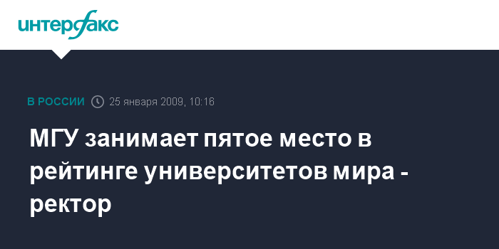 Москва. 25 января. INTERFAX.RU - По результатам проведенных независимых исследований Московский государственный университет занял пятое место в рейтинге ведущих университетов мира, заявил на торжественной церемонии празднования дня Татьяны в МГУ ректор университета Виктор Садовничий.