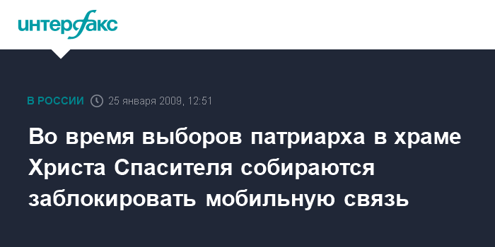 Москва. 25 января. INTERFAX.RU - В период избрания патриарха Московского и всея Руси в храме Христа Спасителя предполагается установить "глушилки" сотовых телефонов.