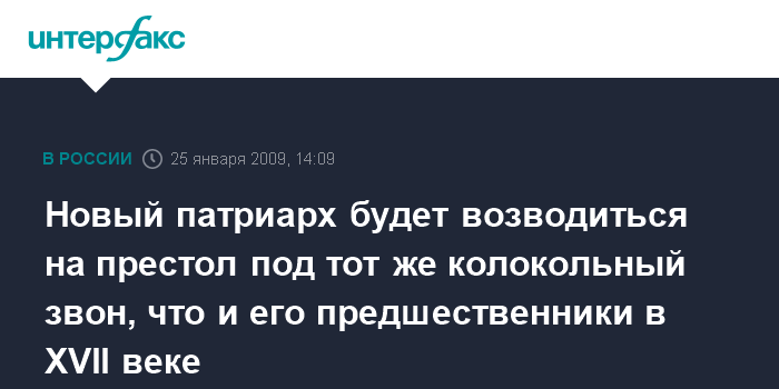 Новый патриарх будет возводиться на престол под тот же колокольный звон, что и его предшественники в XVII веке