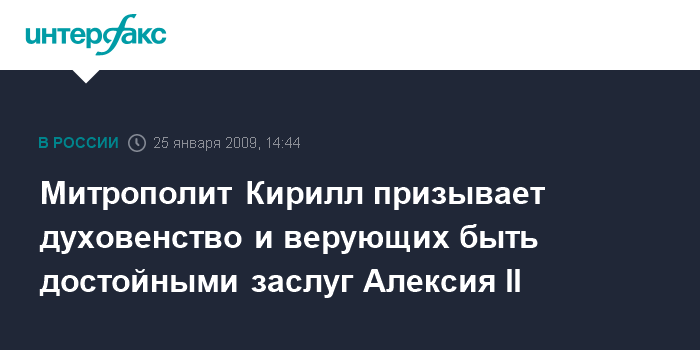 Митрополит Кирилл призывает духовенство и верующих быть достойными заслуг Алексия II