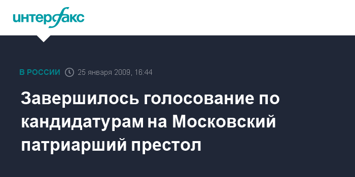 Москва. 25 января. INTERFAX.RU - К настоящему времени на Архиерейском Соборе завершено голосование по кандидатурам, выдвигаемым на Московский патриарший престол.