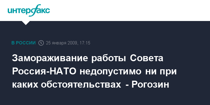 Москва. 25 января. INTERFAX.RU - Постпред России при НАТО Дмитрий Рогозин заявил, что намерен поставить перед своими коллегами по североатлантическому альянсу вопрос о недопустимости ни при каких обстоятельствах замораживания работы Совета Россия-НАТО (СРН).