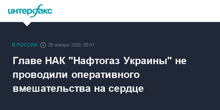 Москва. 26 января. INTERFAX.RU - Главе правления НАК "Нафтогаз Украины" Олегу Дубине не проводили оперативного вмешательства на сердце, а оказали необходимую помощь и вовремя вывели из предынфарктного состояния.