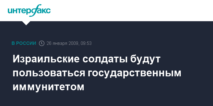 Иерусалим. 26 января. INTERFAX.RU - Израильские солдаты, в случае выдвижения против них обвинений в совершении военных преступлений в период кампании в секторе Газа, будут пользоваться государственной защитой. С таким заявлением выступил премьер-министр Израиля Эхуд Ольмерт.