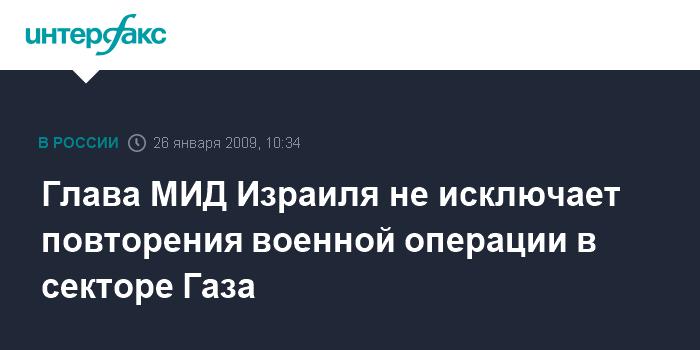 Ливни также отметила, что в случае необходимости Израиль может повторить военную операцию в секторе Газа. "Я не исключаю, что в будущем нам придется это сделать", - подчеркнула она. Израильский министр высоко оценила роль России в ближневосточном урегулировании. "Россия с ее авторитетом на ближневосточной арене может помочь в достижении мира", - сказала она.