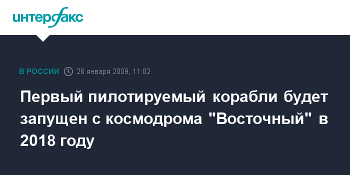 Москва. 26 января. INTERFAX.RU - Первый пилотируемый полет с космодрома "Восточный", который создается в Амурской области, планируется выполнить к 2018 году, сообщил вице-премьер РФ Сергей Иванов.