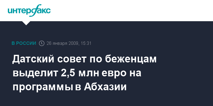 Сухуми. 26 января. INTERFAX.RU - Датский совет по беженцам (ДСБ) планирует выделение значительных средств на реализацию проектов в Абхазии.
