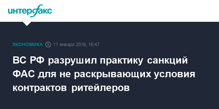 ВС РФ разрушил практику санкций ФАС для не раскрывающих условия контрактов ритейлеров