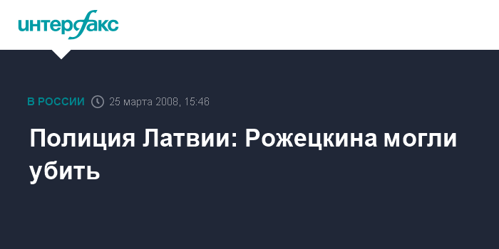 Рига. 25 марта. INTERFAX.RU - Латвийская полиция допускает, что предприниматель Леонид Рожецкин, неделю назад без вести пропавший в Юрмале, мог быть убит. Об этом сообщили агентству BNS в пресс-службе государственной полиции.