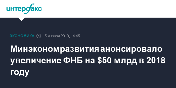 Москва. 15 января. INTERFAX.RU - Фонд национального благосостояния в 2018 году прибавит около $50 млрд. Такой прогноз содержится в докладе "Картина экономики", опубликованном в понедельник Минэкономразвития.
