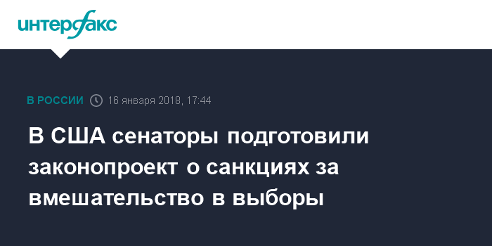 Москва. 16 января. INTERFAX.RU - Американские сенаторы подготовили законопроект, предполагающий введение новых санкций в отношении России, а также санкций в отношении других стран в случаях попыток вмешательства в выборы в США, сообщил во вторник телеканал CNN.
