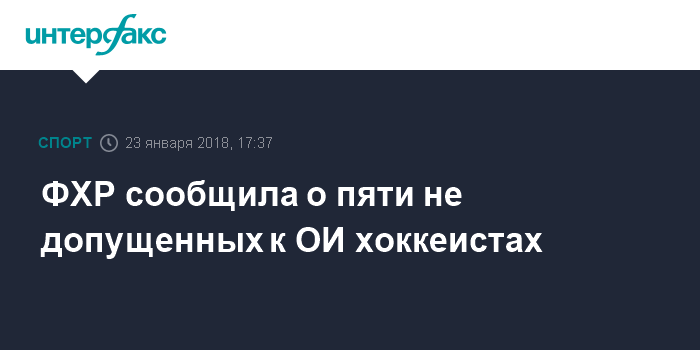 Москва. 23 января. INTERFAX.RU - Федерация хоккея России (ФХР) сообщила о том, что пять кандидатов в олимпийскую сборную страны не получили от Международного олимпийского комитета (МОК) приглашения на участие в ОИ-2018.