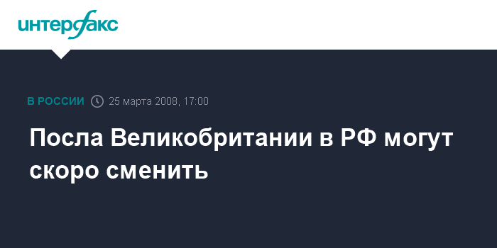 Москва. 25 марта. INTERFAX.RU - Вполне возможно, что в ближайшее время сменится руководитель дипломатической миссии Великобритании в России, собщили "Интерфаксу" информированные источникив в Москве. Как стало известно, российская сторона уже одобрила кандидатуру нового британского посла в Москве.
